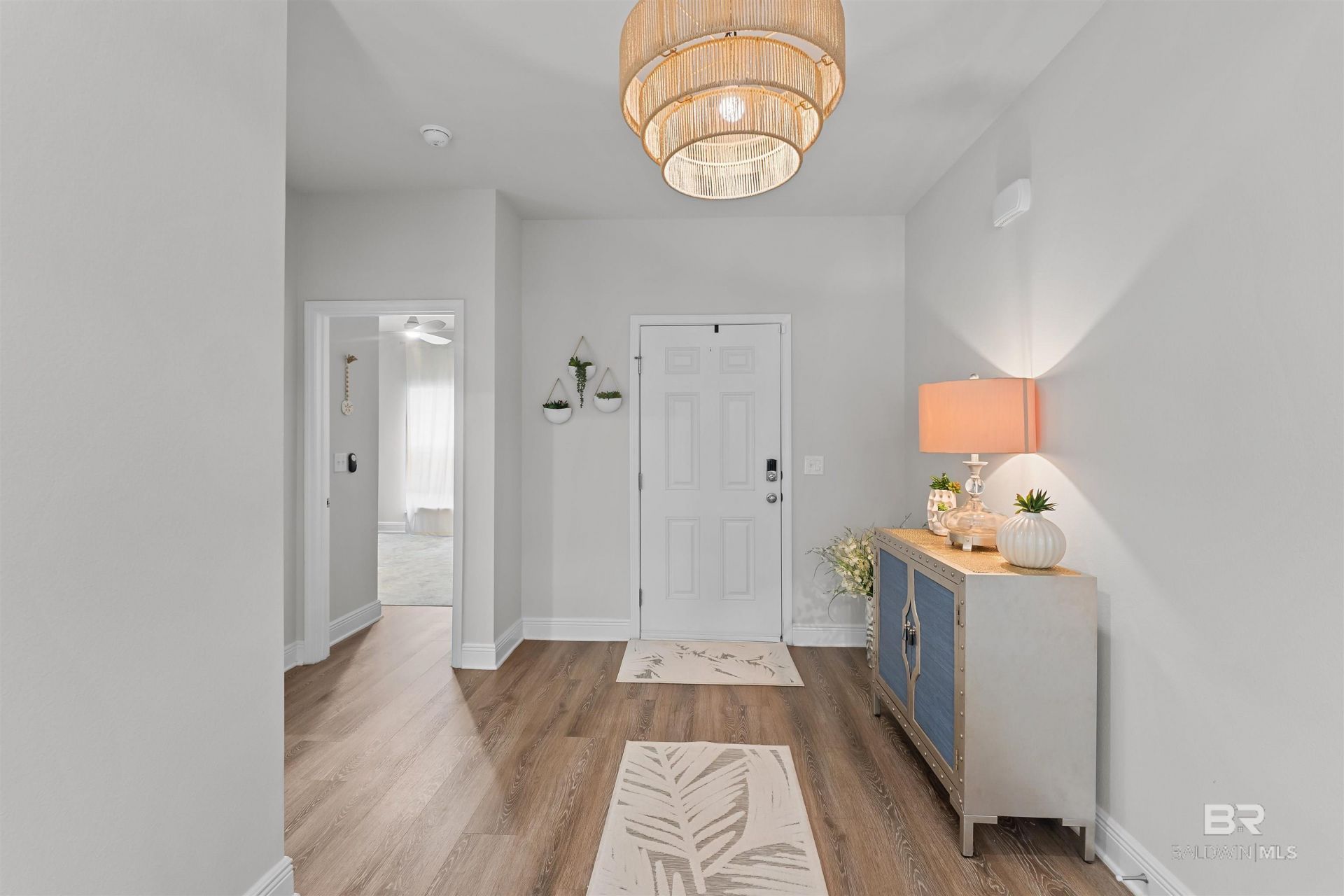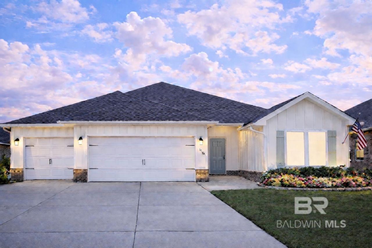 Spectacularly Splendid Gold Fortified 4 BR 3 BA ,Move-in ready home. Highly functional, open concept for modern living featuring new high-end finishes, upgraded lighting, fresh paint, and designer touches thru out, carpet-free, luxury vinyl plank flooring flowing through all living spaces. The chef inspired kitchen is a showstopper w/ granite countertops, backsplash, under-cabinet lighting, a large pantry and oversized island that opens to the family room. Living area is anchored by a custom-built entertainment center with fireplace and ambient backlighting, creating an inviting space. Storm shutters and Smart Home pkg. adds convenience and peace of mind with cameras, smart thermostat, lights & door locks. The primary suite is a true retreat, boasting 2 walk-in closets and a spa-like en-suite with granite countertops, a walk in shower, and a luxurious soaking tub. A 2nd bedroom makes an ideal In-law or teen suite with its own full bath and walk-in closet, the 3rd and 4th bedrooms are perfectly positioned on either side of the 3rd full bath for convenience. Enjoy year-round living on the screened-in patio, which opens to an extended outdoor paver pad, great for grilling, entertaining or relaxing with family and friends. The 3-car garage provides ample space for vehicles, storage, toys, or golf cart. Be a part of a vibrant, amenity-rich community with a resort style pool w/20' slide, an adult-only pool, splash pad, gym, yoga room, scenic trails, 6 serene ponds, and a fun HOA calendar featuring food trucks and game & movie nights . Easy access to Daphne and Fairhope, shopping, dining, groceries, medical services & airports. The perfect balance of peaceful living and modern convenience. Seller and Broker make no warranties or representations as to the accuracy of info provided. Buyer to verify all info. during due diligence. Samsung Bespoke 3-Door French Door Smart Refrigerator, & 72 TV convey. Seller Is Licensed Realtor. Buyer to verify all info during due diligence