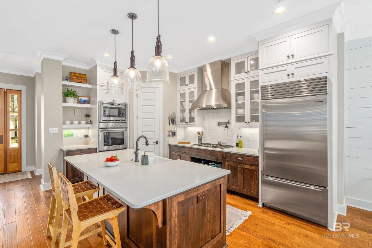 536 Artesian Springs Drive offers the kind of Point Clear lifestyle that makes people want to stay. Located in the original phase of Battles Trace at The Colony, this move-in ready home sits on a quiet street surrounded by mature landscaping, established trees, and desirable canopy cover that gives this section of the neighborhood its character.Inside, the open floor plan, beautiful hardwood floors, and clean modern finishes create a comfortable, easy flow for everyday living and entertaining. The kitchen features Thermador and Sub-Zero appliances, including a wine chiller, and opens nicely to the main living space. The screened porch and patio add great options for outdoor entertaining, while the decorative fenced backyard includes three gates for added access and charm.This Gold Fortified home also includes a whole-home generator, whole-home air filtration system, tremendous storage, an oversized two-car garage, and an additional golf cart garage with peg board storage. Golf cart is negotiable.Just minutes from downtown Fairhope, The Grand, waterfront access, golf, tennis, pickleball, pools, trails, and dining, this home puts you in one of Point Clear's most desirable golf cart communities in the Fairhope School District. Buyer to verify all information during due diligence.