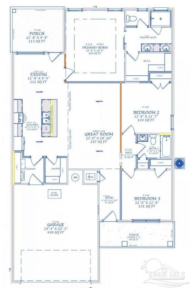 Under Construction | Estimated Completion Fall 2026 This charming 3-bedroom, 2-bath home sits on a spacious 1.2-acre lot, offering the perfect blend of comfort and privacy. Enjoy both front and back covered porches-ideal for relaxing and taking in the beautiful, mature trees that line the back of the property. Inside, you'll love the open-concept layout with vaulted ceilings and no carpet throughout. The kitchen is designed to impress with a large island, granite countertops, undermount sinks, and soft-close cabinetry. Timeless brick accents add curb appeal and character to the exterior. The primary suite features tray ceilings, a spacious walk-in closet, and a tiled shower with glass doors for a clean, modern finish. You still have time to make color selections and personalize this home to fit your style! Photos are for illustration purposes only and may not reflect the exact finishes, colors, or features of the home.